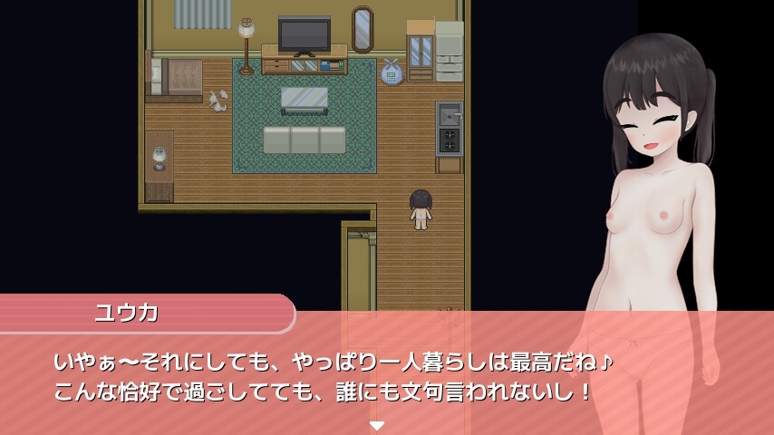 主人公は、東京の郊外に住む女子大学生のユウカ。 休日を前に夜更かしをしようと胸を弾ませ、一人暮らしの彼女は開放的な感覚を全身で楽しみます。しかしこの後すぐに、突然の「ハプニング」が彼女に襲い掛かるのだ……! パンツ一丁で夜中の住宅街に投げ出されてしまったユウカは、この窮地をどのように乗り切るのでしょうか……? なお本作は、【ハプニング・露出・羞恥】をテーマとした、【本番なし】のソフトな描写を特徴としています。